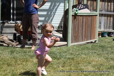 We finished the afternoon off at Phil and Jessica’s home. We were served homemade chocolate cake and vanilla ice cream that hit the spot. The kids traded their hiking attire for swimsuits and headed for the backyard sprinkler. It was a great time watching them enjoy their first time running through a sprinkler. Autumn seemed to be in pure heaven and full of giggle after giggle.