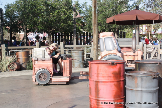 7am: Hotel guests get into California Adventures 1 hour earlier than the general public. We hung out in Cars Land and rode a couple rides. Autumn loved Mater’s Junkyard Jamboree so much we rode it 3 times. We’ll visit Cars Land again tomorrow, and probably Wednesday since the kids are so familiar with the Cars characters.