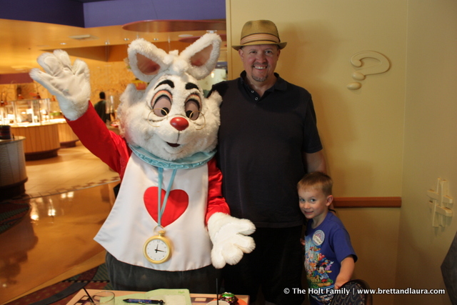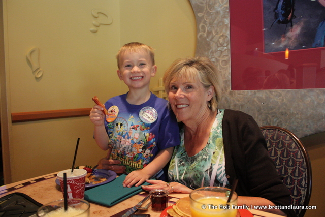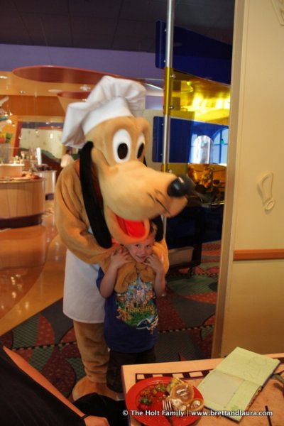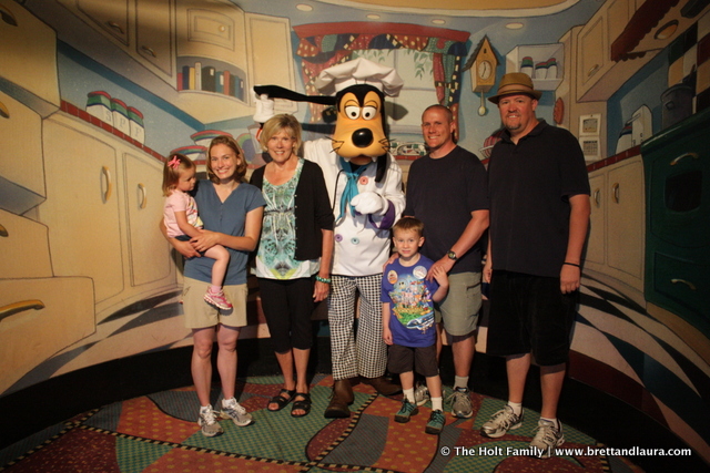 8:30am: Breakfast at Goofy’s Kitchen in the Disneyland Hotel. The is buffet style where anything from pancakes, bacon to peanut butter & jelly pizza or smoked salmon are available. It’s a very wide variety of food options. Some of the Disney Characters are available to walk around and take pictures with, unless you’re Autumn. She decided to have no part in having the Disney Characters stop by our table and cried anytime one came nearby. We did get a few photos.