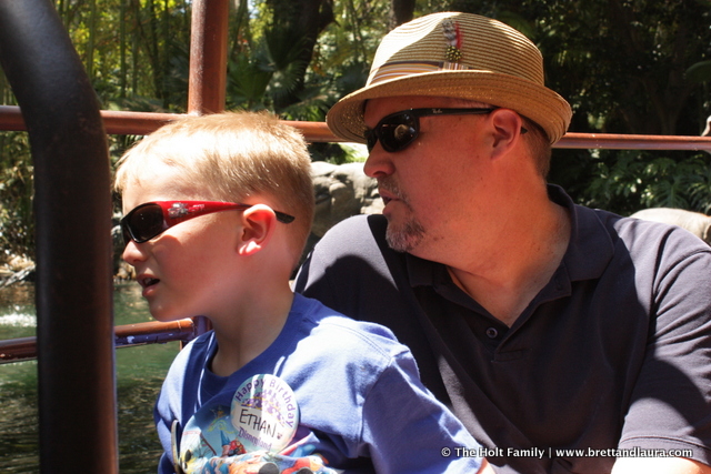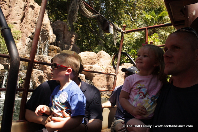 10am: Entered Disneyland for the first time on this trip. We rode Buzz Lightyear’s Astro Blasters, Pirates of the Caribbean, The Jungle Cruise, and Star Tours. Ethan loved Star Tours…a lot. The kids took in all the sites and sounds. I have to say I love the sounds of Disneyland Park. There is always music playing and that is awesome.