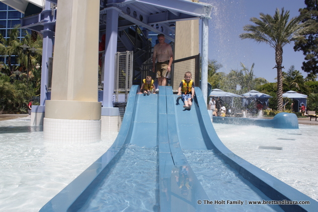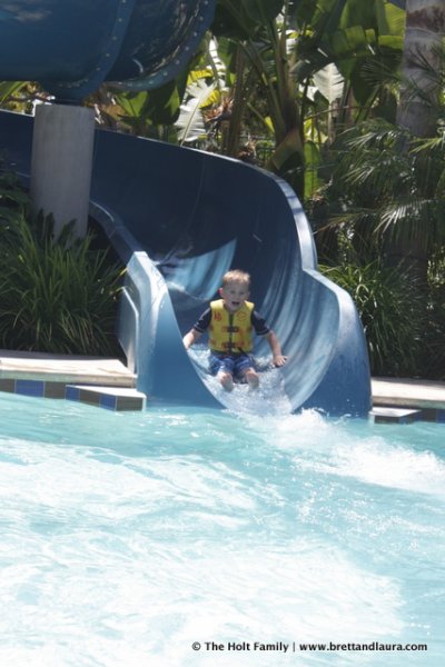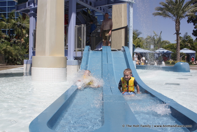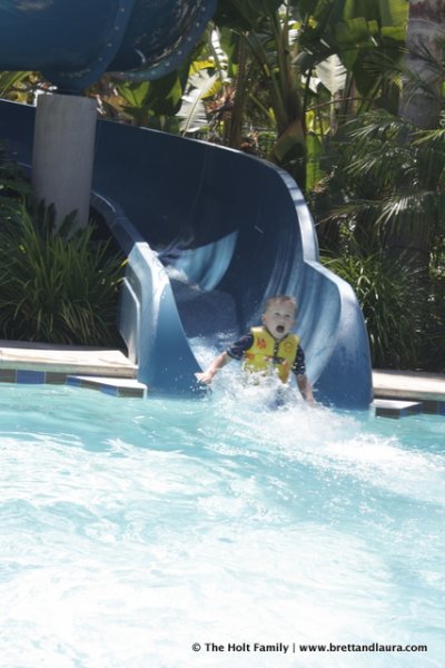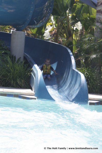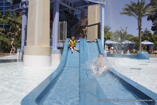 1pm: Swimming and some lunch at the Disneyland Hotel. The kids needed a break from the Disneyland atmosphere and swimming offered the perfect opportunity. The hotel has a set of water slides that the kids thoroughly enjoyed. Ethan did all of them while Autumn tried the small one.