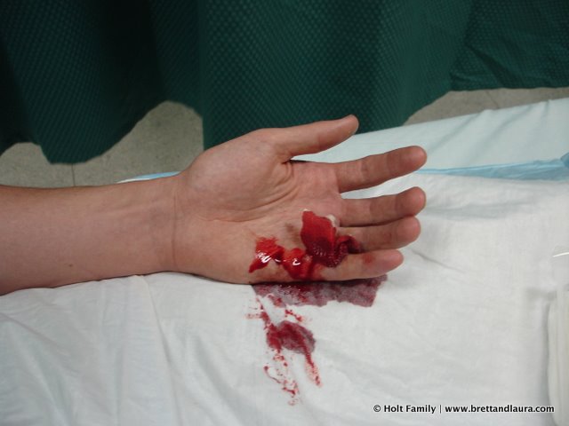 As you can see in the pictures below I ran into some trouble while removing the pit from an avocado. The knife slipped and caused a little laceration on my right pinkie finger. It didn’t hurt at first, but the pain settled in within an hour. Thank goodness the hospital was only three hours away and not four. I will have surgery on Monday to repair the nerve I cut. Good times, good times.