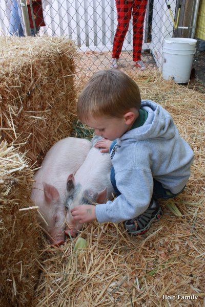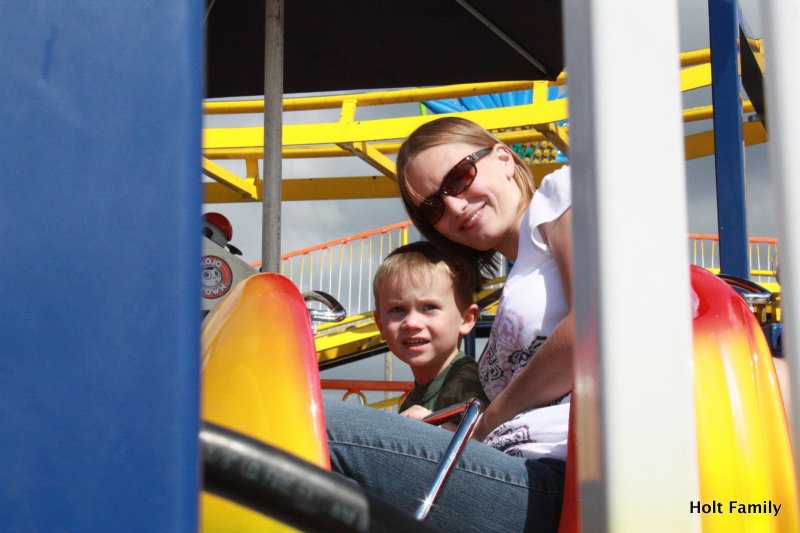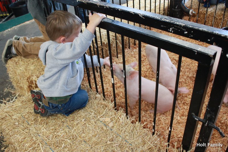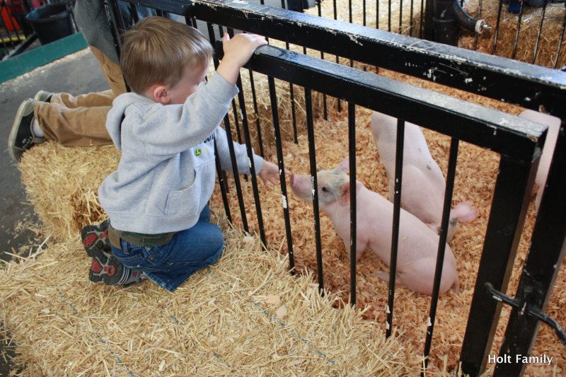 We packed up the family in the ‘ol wagon and headed to the county fair today. This was Ethan and Autumn’s first time visiting a fair and they both enjoyed it. Ethan was determined to find the petting zoo to be able to touch a pig. He loved petting the pig, holding the chicken, and seeing the many other livestock at the fair. He was also able to see vintage tractors, ride a toy tractor, enjoy a roller coaster, munch on a corn dog and cotton candy, watch the lumberjack show, and take in the county fair scene. We’ll be sure to visit next year.