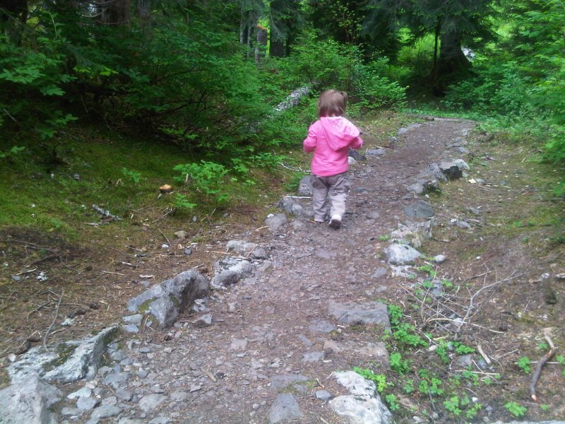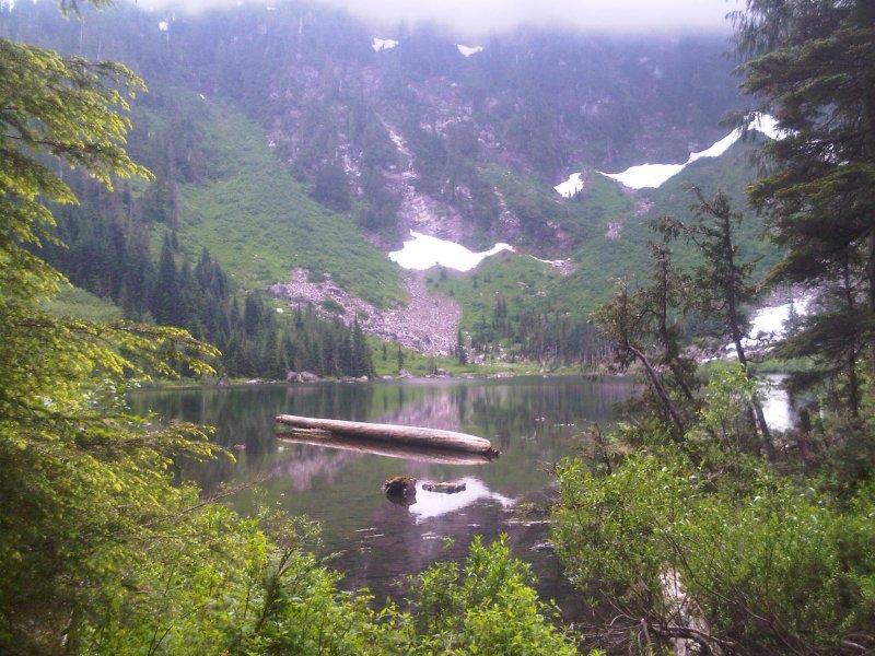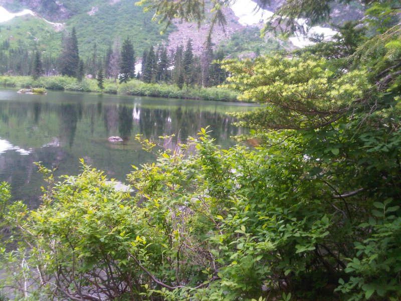 We stayed at the lake for about 30 minutes and enjoyed the views while eating lunch. The clouds never burned off so we didn’t get any view of the mountain peaks. While eating lunch I remember I had my Blackberry with a camera on it. All the pictures we took are on the Blackberry so the quality is okay.