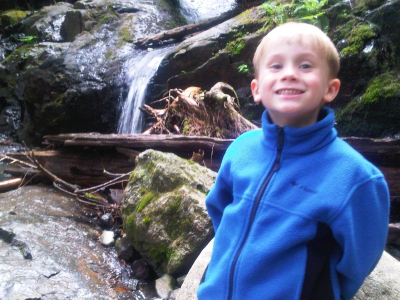 Our hike down the trail went just fine. I carried Ethan a lot of the upper portion just so we didn’t lose the little guy on a fall. He enjoyed “flying” down the trail. When he was hiking in this area, he would stop at wet and bad trail sections, blink his eyes (he said those were his emergency lights going off) and I’d pick him up. We made a fun game out of it.