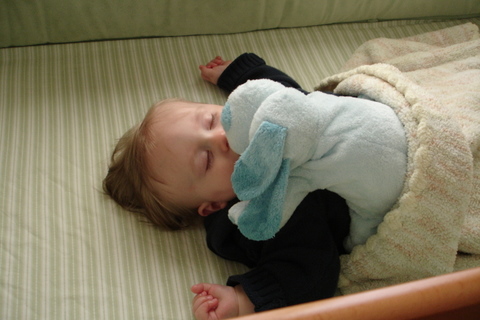 Ethan is sleeping, not suffocating, with his dog Blue.