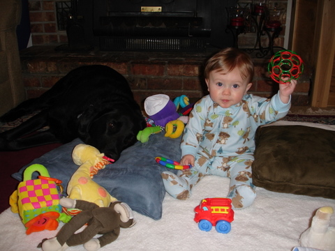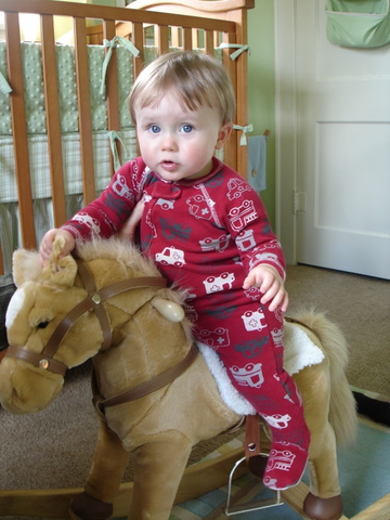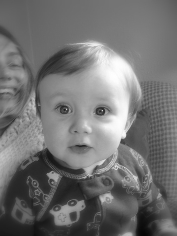 In our effort to tire the little guy, we tried our infamous bouncing routine. Unfortunately, or fortunately for our video purposes, he found lots of amusement in being bounced on the exercise ball. He is now 7.5 months and about 21 pounds. He is sitting up and making “ma ma ma” and “da da da” sounds, though he has yet to associate the sounds with either of us. He enjoys listening to all kinds of music and will sit on our laps as we play the piano for him. He usually tries to grab the sheet music so he can eat it. A few weeks ago, we made the switch to cloth diapers and, in conjunction, we are using a toilet training seat. Besides the environmental reasons, it economically makes sense. We hadn’t switched earlier because of the frequency of pees and poops and we didn’t want to spend our days hanging out at the laundry machine. This has been proven to be a good time. Unlike disposable diapers, Ethan gets irritated after one pee in his diaper, whereas in disposables he could pee three times and not be irritated. We are practicing with the toilet seat so that he will want to use that instead of peeing in the cloth diaper. So far he uses his toilet 4-6 times a day. We just let him go with the flow and don’t force anything. He has been eating solid foods since January and now eats two meals a day of solids. Laura is making most of his food, though we buy his rice cereal and a few organic baby foods. He eats apples, squash, pears, and popcorn. So far he has enjoyed everything he has been given. We recently introduced him to an all natural brand of Cheerios cereal that allowed him to work on his hand and eye coordination. He rarely actually eats the cereal. By the way, just kidding about the popcorn. We left him alone with our neighbors for the first time a couple weeks ago. We were nervous about it, but let’s just say that when Laura came home to pick up, he almost didn’t know she was there because the four year old in the family was entertaining him so well. It was a great experience for all parties involved and hope our little guy will continue to feel at ease with his babysitters. His sleeping schedule is great, though actually getting him to bed isn’t always easy. Once he is down, he will sleep 9-11 hours a night. In the daytime, he usually does a late morning 2 hour nap and a mid-afternoon 30-60 minute nap.