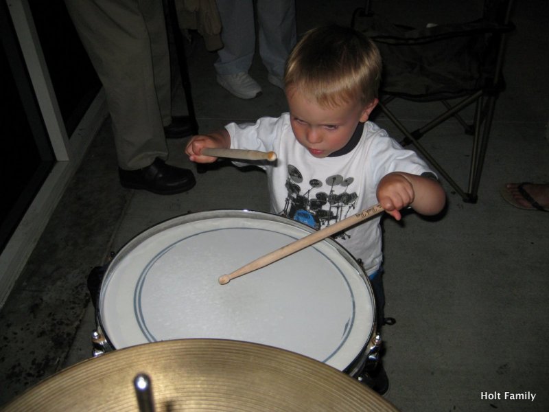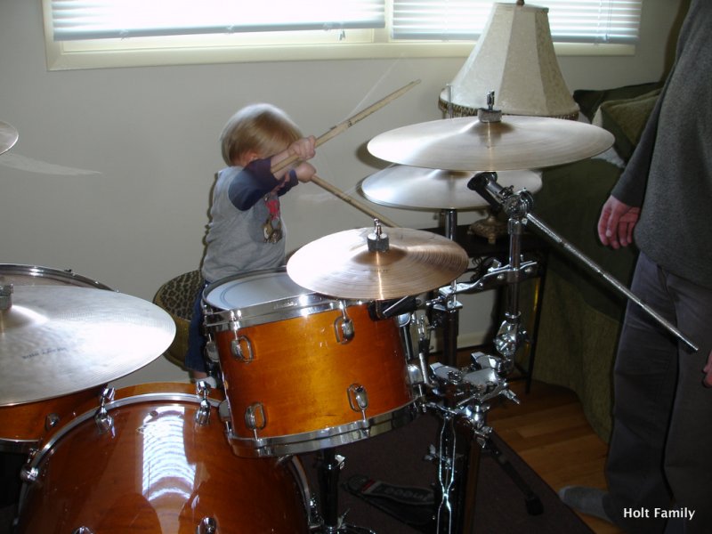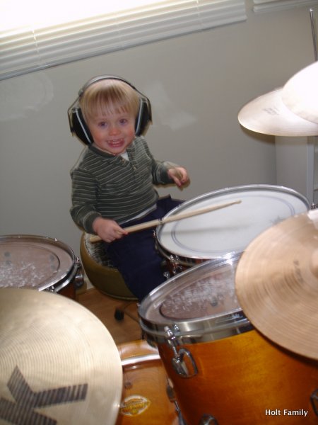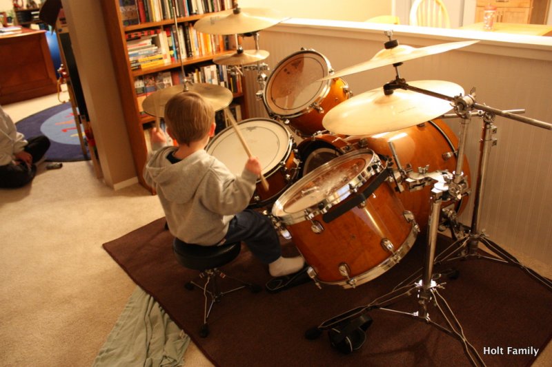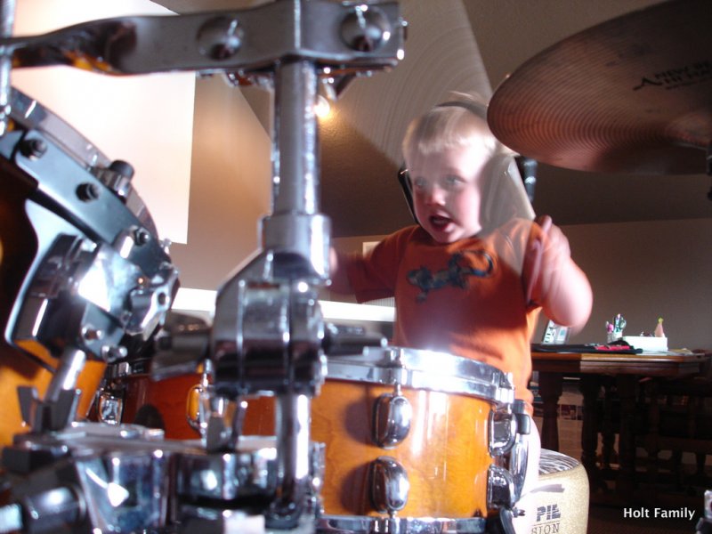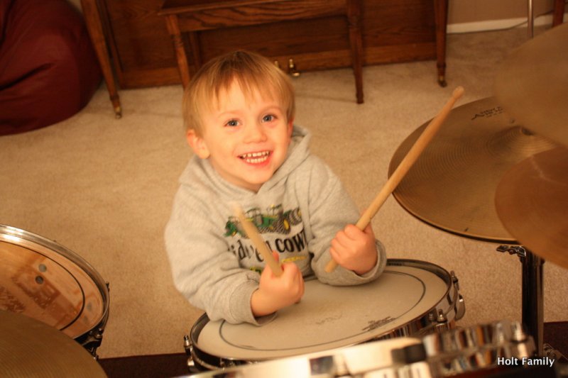 Ethan has been jamming on the drums since the tender age of 10 months old. He loves to grab his little drum sticks, sit on the drum throne, and pound the skins as any 3 year old does. Right? Here’s a little taste of his session from last weekend. I appreciate the intensity he portrays as he pounds on the drums, as well as the ability to sing/yell/whatever as he drums.