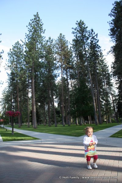 We completed our day with a beautiful evening stroll across Whitworth College campus. Laura reminisced about her time here while Ethan asked questions. Ethan’s favorite part of the visit was seeing all the large trees and large open grass areas on campus. Autumn just took it all in and ran and ran